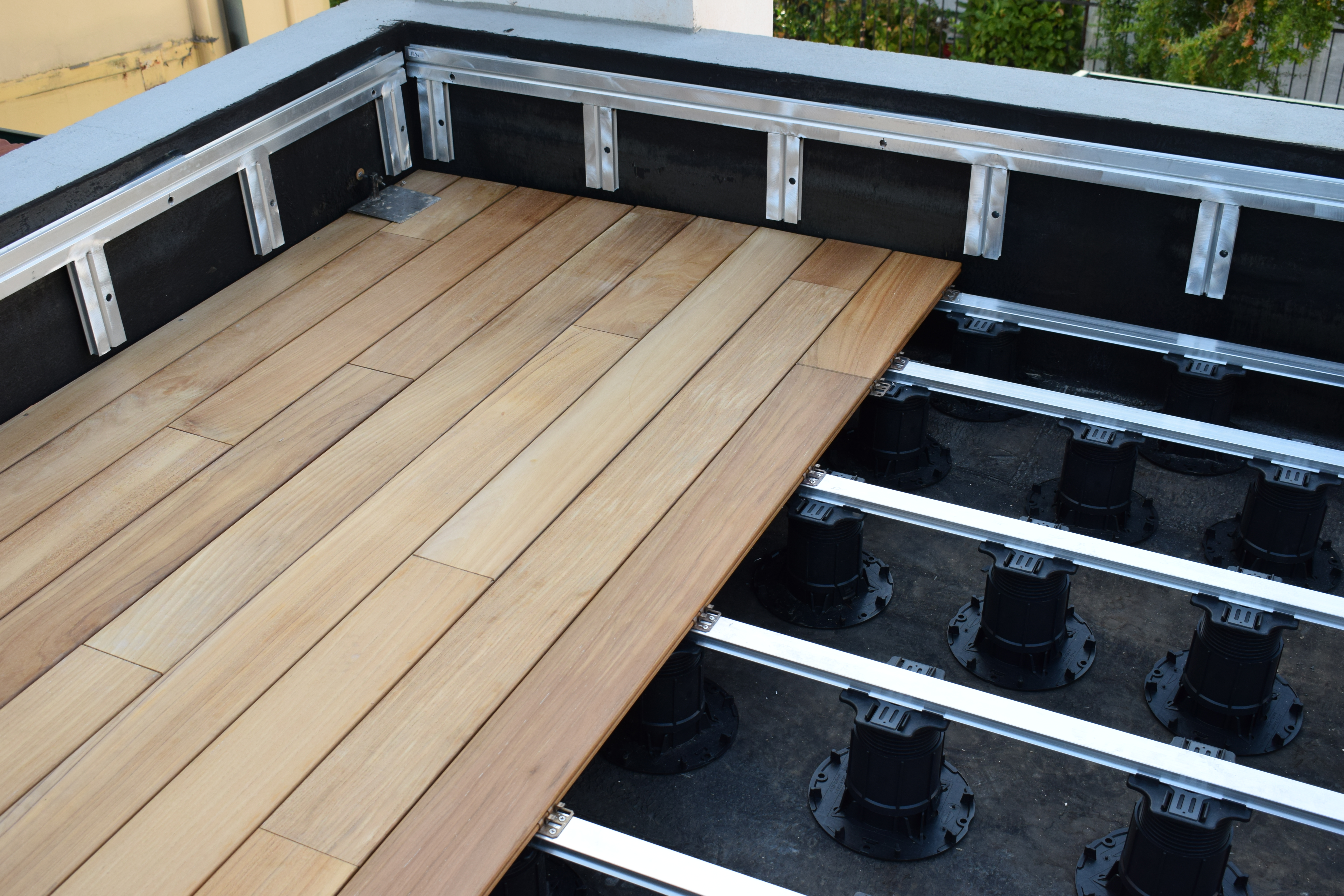 D’un point de vue fonctionnel, le revêtement surélevé transforme la terrasse en un espace technique inspectable, tout en garantissant une esthétique soignée et une gestion efficace des eaux pluviales.