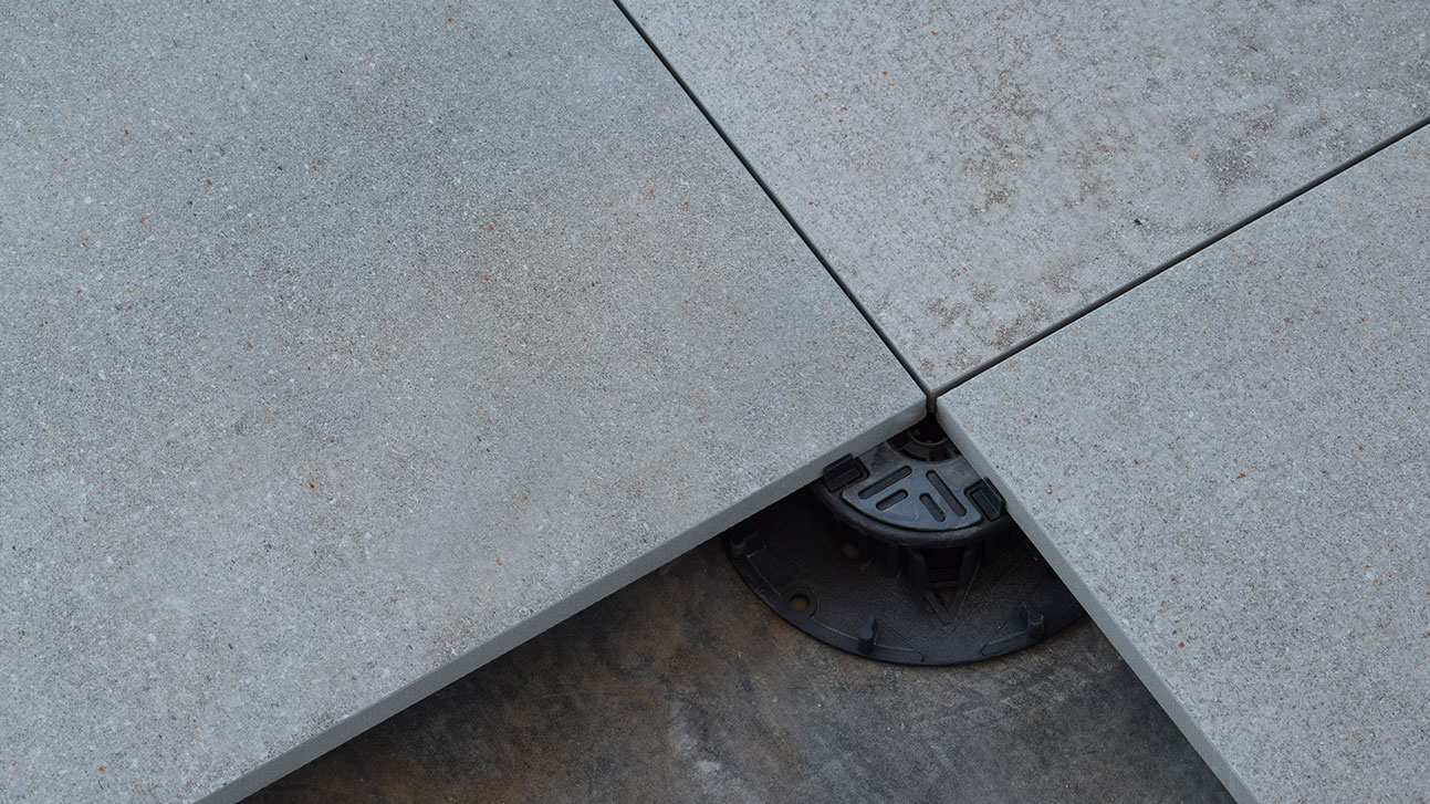 Dans les planchers surélevés, la bonne gestion des joints entre les dalles joue un rôle fondamental pour l'évacuation de l'eau. Les espaces entre les éléments doivent être suffisants pour permettre le drainage rapide des précipitations vers la surface inférieure, en évitant les stagnations à la surface du plancher. Le long des bords et à proximité des murs, il est également conseillé de prévoir un espace périmétrique adéquat, afin de ne pas entraver le flux naturel de l'eau.